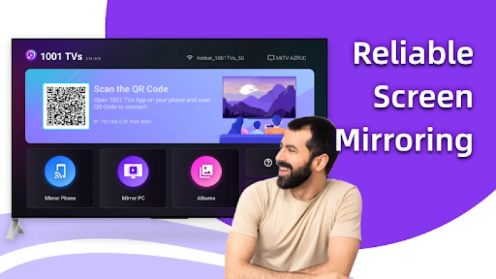 1001 TVs dirancang untuk kompatibilitas universal, memungkinkan koneksi yang mulus dengan berbagai jenis TV pintar, proyektor, dan set-top box, bahkan tanpa dukungan AirPlay atau Miracast bawaan. Privasi Anda adalah prioritas kami; semua data mirroring sepenuhnya berada dalam jaringan lokal Anda, tidak pernah diunggah ke cloud, memberikan keamanan 100%. Dan eksklusif untuk Anda, fitur Album TV memungkinkan Anda mengunggah dan menyimpan foto serta video favorit di TV, siap ditonton kapan saja tanpa perlu ponsel tetap terhubung. Dengan antarmuka yang intuitif, hanya satu ketukan untuk terhubung, 1001 TVs adalah solusi lengkap untuk memperluas dunia digital Anda ke layar terbesar di rumah.