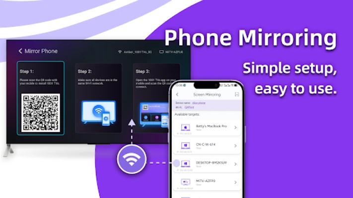 1001 TVs mempermudah pencerminan layar dari ponsel Android, iPhone, Windows, dan Mac langsung ke Android TV Anda. Tonton semua konten favorit di layar lebar rumah Anda dengan koneksi mulus dan tanpa ribet.