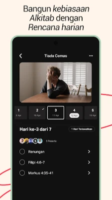 Bangun kebiasaan doa yang kuat dengan kartu doa intuitif, membantu Anda melacak niat dan merayakan setiap jawaban bersama komunitas Anda. Abadikan inspirasi Anda dengan membuat gambar ayat Alkitab yang menakjubkan atau menambahkan tulisan suci pada foto. Nikmati fleksibilitas tampilan bacaan dengan pengaturan yang dapat disesuaikan, mulai dari jenis huruf hingga mode gelap, demi kenyamanan optimal. Untuk pertumbuhan rohani yang berkelanjutan, jelajahi ribuan renungan dan rencana bacaan, mulai dari topik spesifik hingga rencana membaca Alkitab setahun penuh. Saksikan juga video inspiratif dari proyek-proyek seperti The Bible Project dan Lumo Project untuk pemahaman yang lebih mendalam.