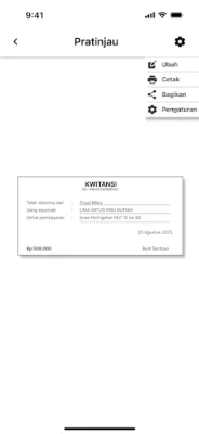 Fungsionalitas inti aplikasi ini terletak pada kemampuannya yang serbaguna. Anda dapat dengan mudah membuat, memperbarui detail, menyimpan, dan bahkan membagikan kwitansi digital Anda hanya dengan beberapa sentuhan. Setiap kwitansi juga dapat diubah menjadi dokumen PDF profesional, tersimpan rapi dalam folder 'Kwitansi Digital' di direktori 'Downloads' penyimpanan internal perangkat Anda, menjadikannya sangat mudah ditemukan. Lebih jauh lagi, aplikasi ini dirancang untuk kompatibilitas luas dengan berbagai printer thermal berbasis Bluetooth, memberikan Anda keleluasaan untuk mencetak salinan fisik langsung dari ponsel cerdas Anda kapan pun dibutuhkan.