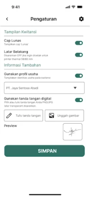 Proses pencetakan dirancang untuk menjadi intuitif dan tanpa hambatan. Aplikasi ini secara cerdas akan mengidentifikasi dan terhubung dengan perangkat Bluetooth pertama yang dipasangkan pada smartphone Anda, memastikan pengalaman cetak yang lancar. Untuk hasil optimal, kami merekomendasikan untuk memastikan printer thermal Anda adalah satu-satunya perangkat Bluetooth yang terhubung saat Anda ingin mencetak. Telah diuji dengan sukses menggunakan printer LWare dengan ID RPP02N, aplikasi ini diharapkan dapat bekerja dengan sangat baik dengan sebagian besar printer thermal berbasis Bluetooth lainnya, menawarkan keandalan dan konsistensi. Dapatkan kontrol penuh atas kwitansi Anda, dari digitalisasi hingga pencetakan, dengan alat manajemen yang komprehensif ini.