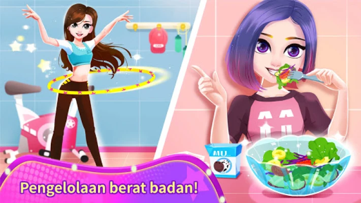 Wujudkan impianmu menjadi supermodel dengan petualangan interaktif yang memukau ini! Dimulai dari fondasi gaya hidup sehat, kamu akan diajak untuk mengelola berat badan secara menyenangkan. Kenakan pakaian olahraga paling keren, pilih antara melompat tali atau hula hoop yang energik, lalu ciptakan menu makanan lezat nan bergizi untuk menjaga kebugaran tubuh. Semua langkah ini dirancang untuk membantumu melangkah mantap menuju panggung mode.
