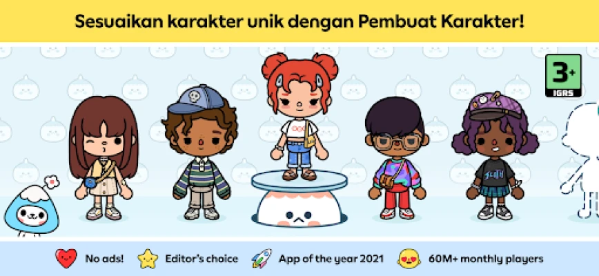Selami Toca Boca World, sebuah alam semesta tanpa batas tempat kreativitasmu menjadi sutradara utama. Di sini, kamu adalah pencerita di dunia yang sepenuhnya kamu ciptakan. Wujudkan impian menjadi guru yang menginspirasi, dokter hewan yang penuh kasih, atau bahkan ikon media sosial. Mulailah dengan membentuk karakter unikmu sendiri menggunakan Pembuat Karakter yang intuitif. Dari gaya rambut hingga aksesori, setiap detail mencerminkan kepribadianmu. Kemudian, dengan alat Desainer Rumah, jadilah arsitek impianmu. Rancanglah apapun, mulai dari rumah idaman, supermarket, hingga kendaraan kamping yang siap berpetualang, lengkapi dengan perabot dan warna pilihanmu yang terus diperbarui.
